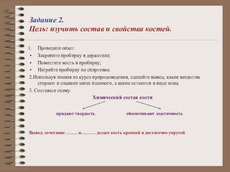 Вывод: сочетание …….. и………. делает кость крепкой и достаточно упругой