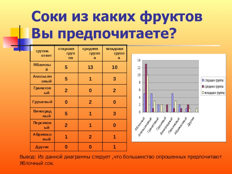 Слайд 22Соки из каких фруктов Вы предпочитаете?