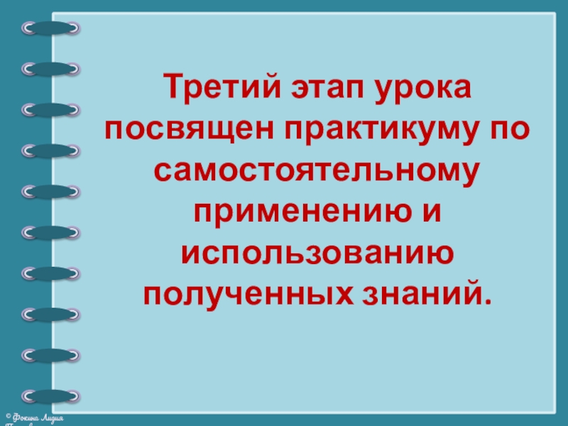 Слайд 18Третий этап урока посвящен практикуму по самостоятельному применению и использованию полученных