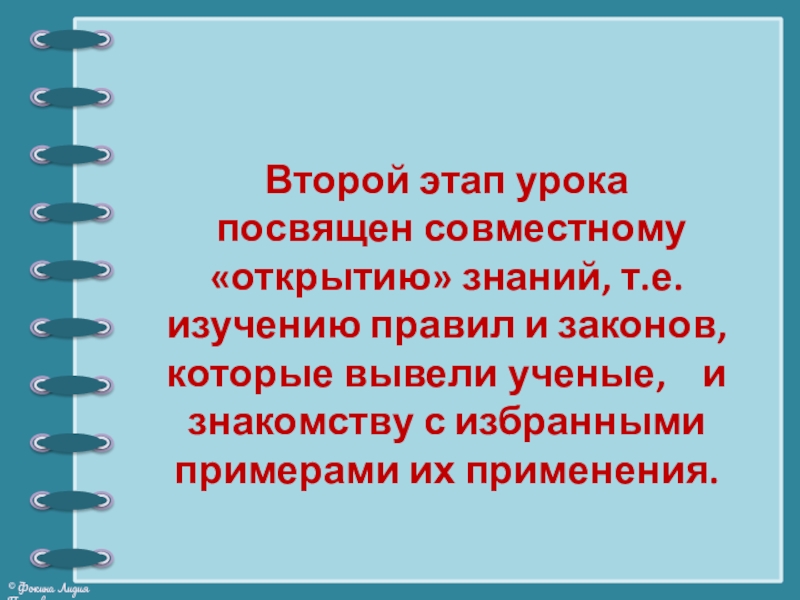 посвящен совместному «открытию» знаний, т.е. изучению правил и