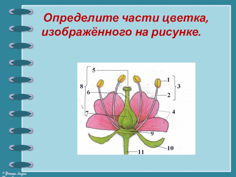 Слайд 23 Определите части цветка, изображённого на рисунке.