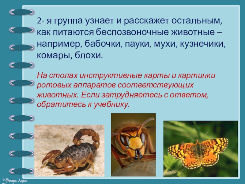 Слайд 172- я группа узнает и расскажет остальным, как питаются беспозвоночные животные