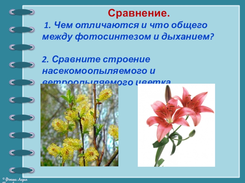 Сравните строение насекомоопыляемого и ветроолыляемого цветка.