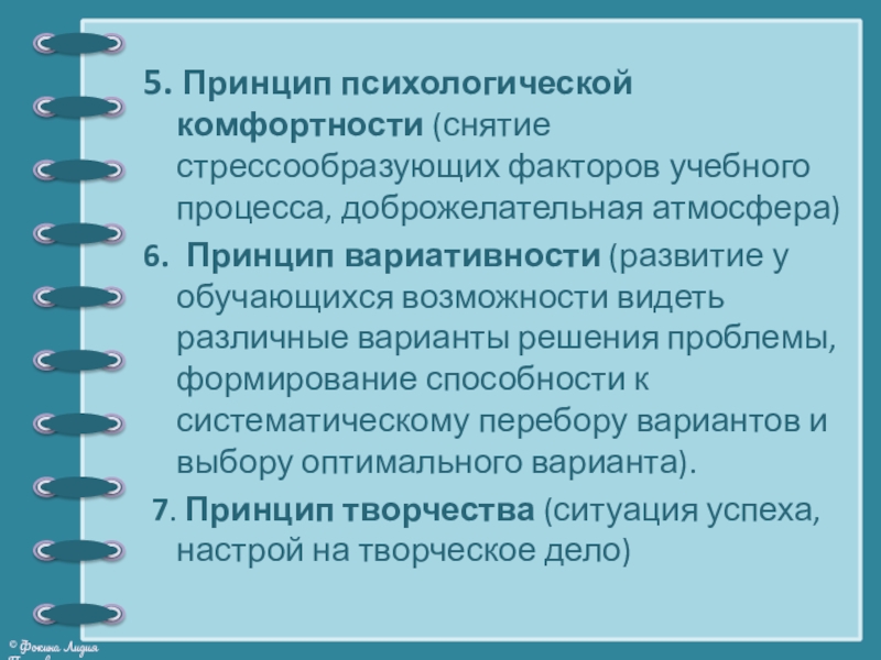 Слайд 65. Принцип психологической комфортности (снятие стрессообразующих факторов учебного процесса, доброжелательная атмосфера)