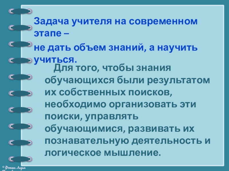 Для того, чтобы знания обучающихся были результатом их собственных поисков, необходимо организовать эти поиски, управлять обучающимися, развивать их познавательную деятельность и логическое мышление.