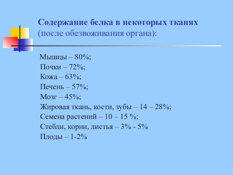 Слайд 7Содержание белка в некоторых тканях
