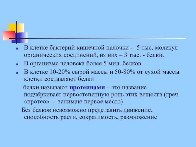 Слайд 6В клетке бактерий кишечной палочки - 5 тыс. молекул органических соединений,