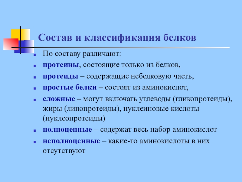 Слайд 10Состав и классификация белков