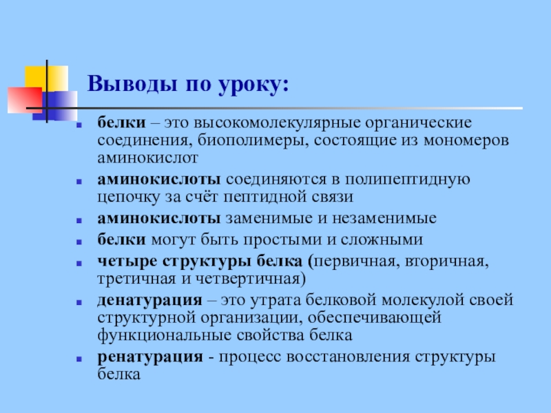 1. Белки – органические вещества, биополимеры.