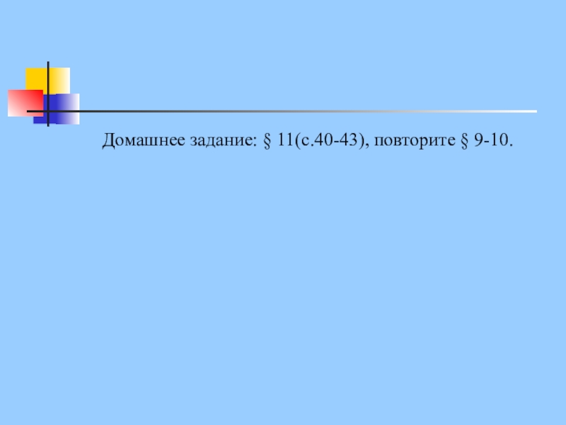 Домашнее задание: § 11(с.40-43), повторите § 9-10.