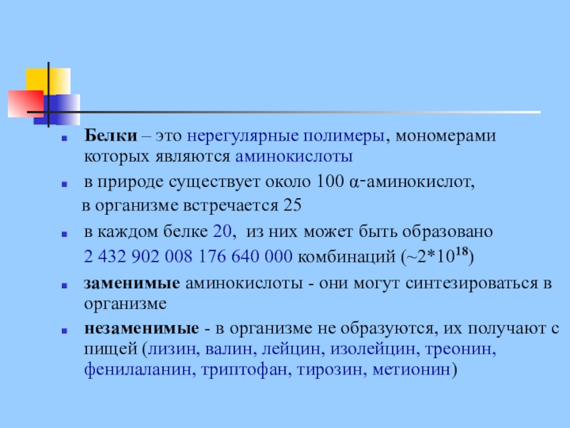 Слайд 9Белки – это нерегулярные полимеры, мономерами которых являются аминокислоты