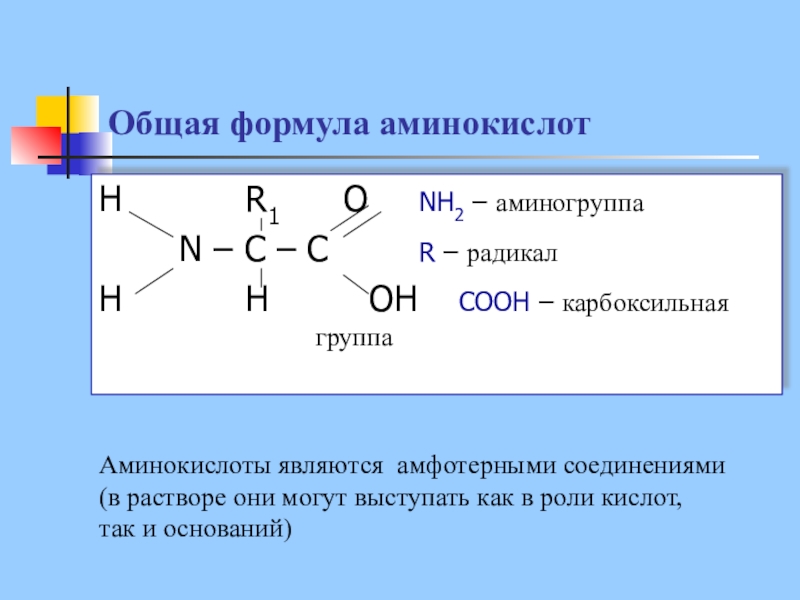 Слайд 12Общая формула аминокислот
