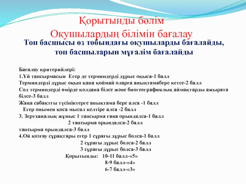 Сол терминдерді өмірде қолдана білсе және биогеографиялық аймақтарды ажырата білсе-3 балл