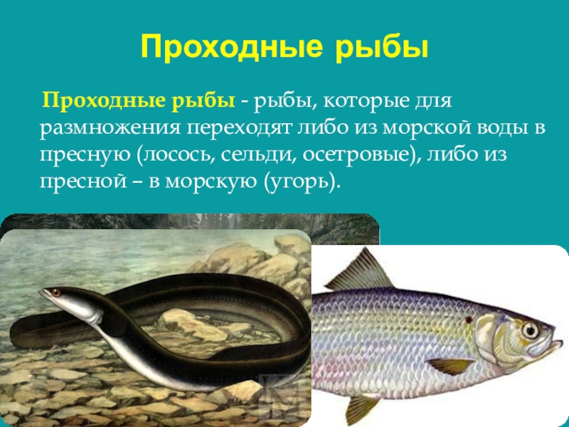 переходят либо из морской воды в пресную (лосось, сельди, осетровые), либо из пресной – в морскую (угорь).