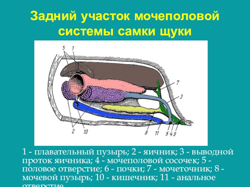 Слайд 3Задний участок мочеполовой системы самки щуки