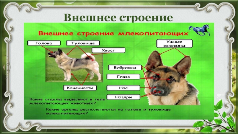 Презентация, доклад Особенности внешнего и внутреннего строения млекопитающих