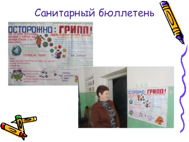 Разработать наглядный материал по профилактике гриппа (санитарный бюллетень, брошюру, буклет, памятку).
