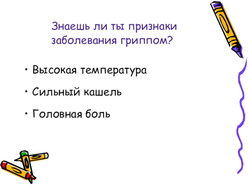 Слайд 11 Знаешь ли ты признаки заболевания гриппом?