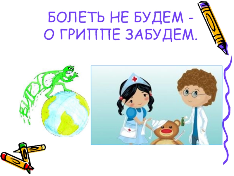 Слайд 1БОЛЕТЬ НЕ БУДЕМ - О ГРИППЕ ЗАБУДЕМ.