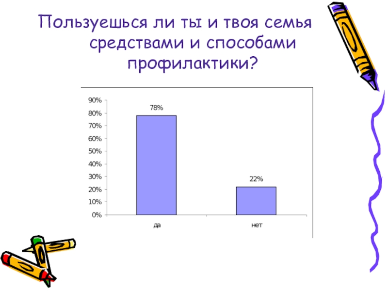 Слайд 10Пользуешься ли ты и твоя семья средствами и способами профилактики?