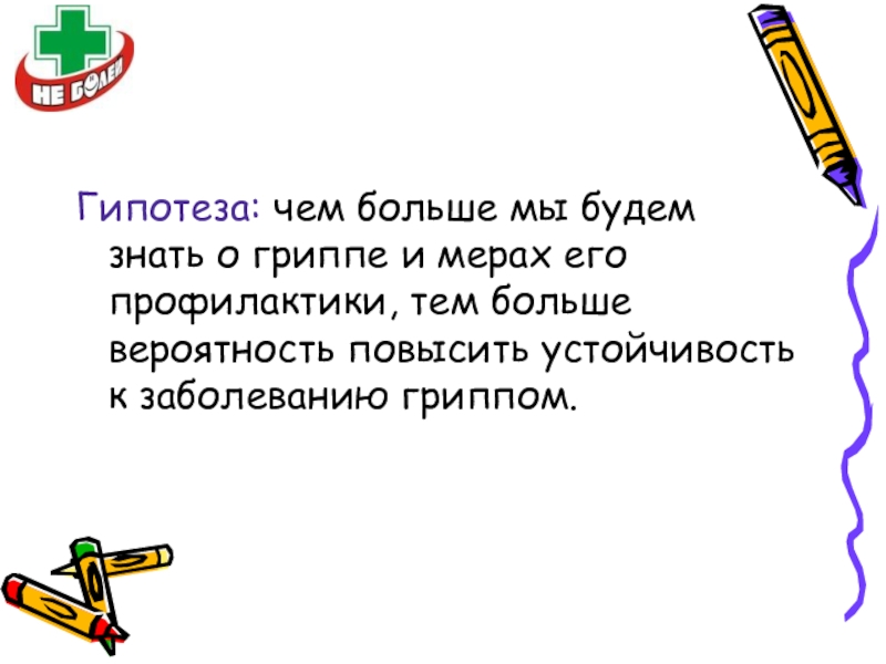Слайд 6Гипотеза: чем больше мы будем знать о гриппе и мерах его