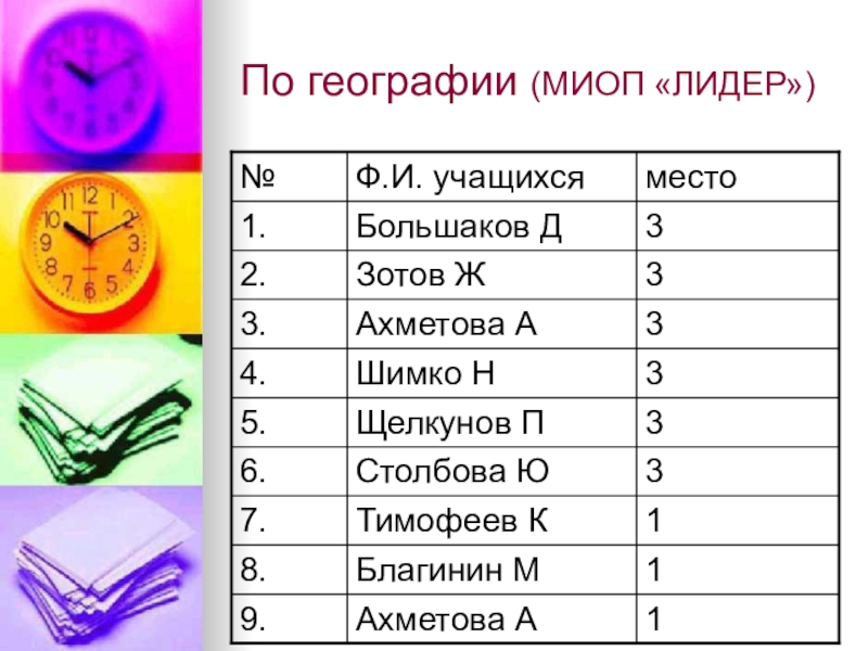 Слайд 8По географии (МИОП «ЛИДЕР»)