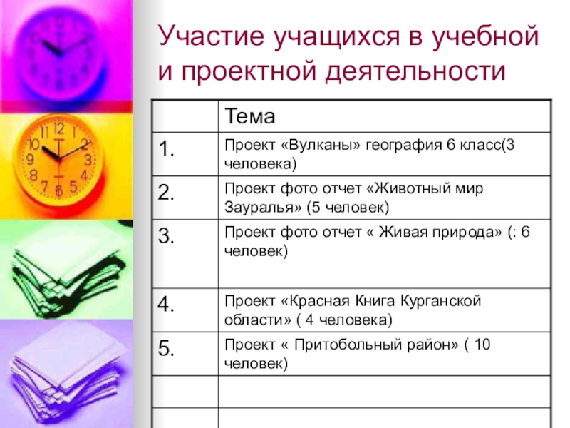 Слайд 4Участие учащихся в учебной и проектной деятельности