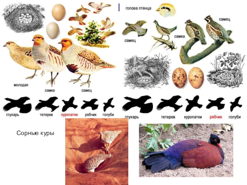 Слайд 11Соколообразные (семейство ястребиные). Верхний ряд, слева направо: ястреб-тетеревятник, канюк, болотный лунь,