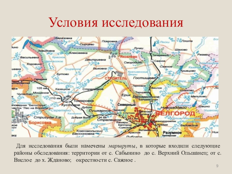 районы обследования: территории от с. Сабынино до с. Верхний Ольшанец; от с. Вислое до х. Жданово; окрестности с. Сажное .