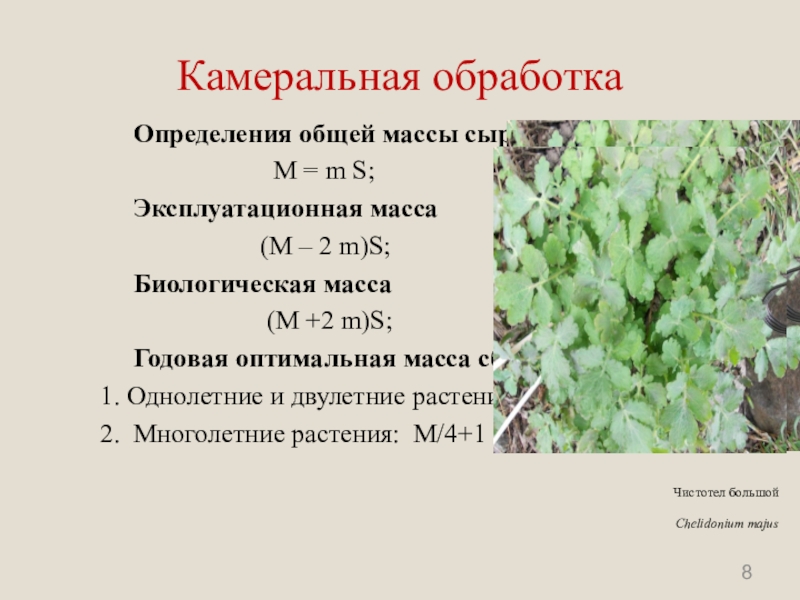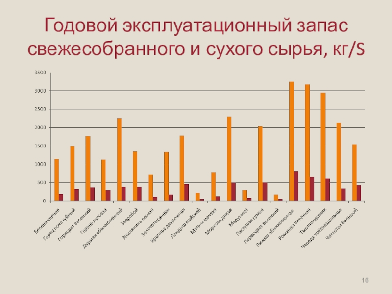 Слайд 16Годовой эксплуатационный запас свежесобранного и сухого сырья, кг/S