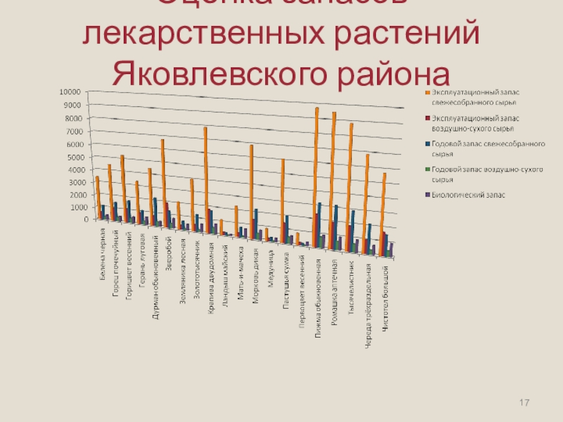 Слайд 17Оценка запасов лекарственных растений Яковлевского района