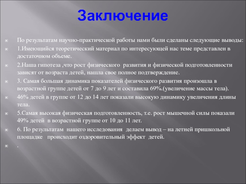 2.Наша гипотеза ,что рост физического развития и физической подготовленности зависят от возраста детей, нашла свое полное подтверждение.