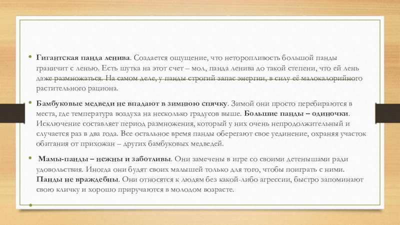 Слайд 7Гигантская панда ленива. Создается ощущение, что неторопливость большой панды граничит с