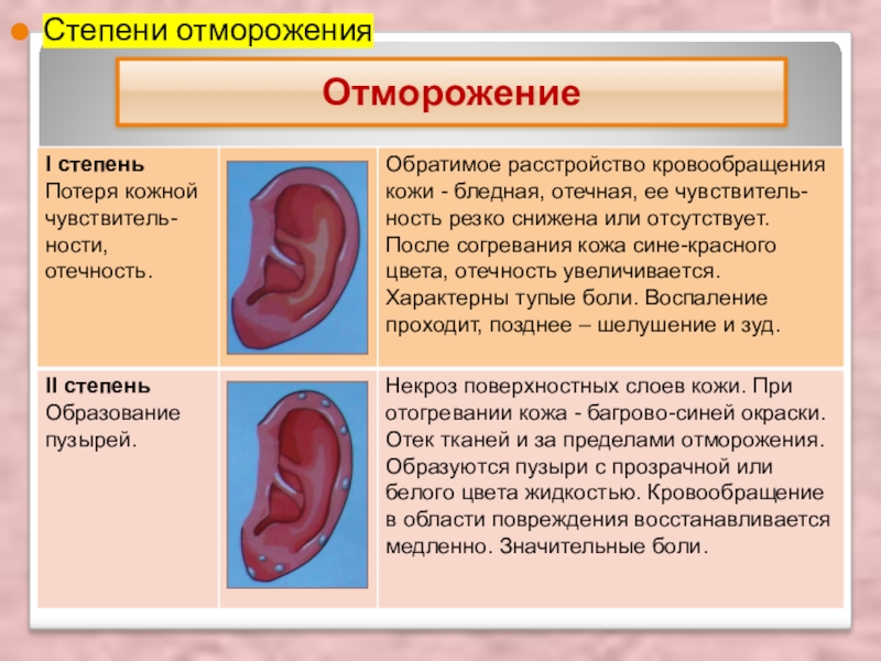 2. Обожжен-ная кожа – интенсивно красного цвета. Пузыри наполнены прозрачной жидкостью. Резкая боль.