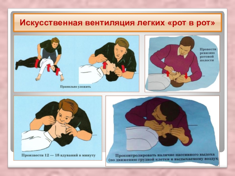 Слайд 8Искусственная вентиляция легких «рот в рот»