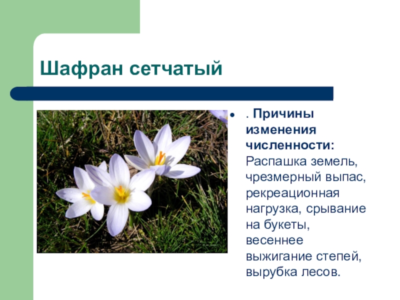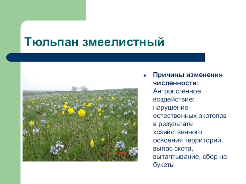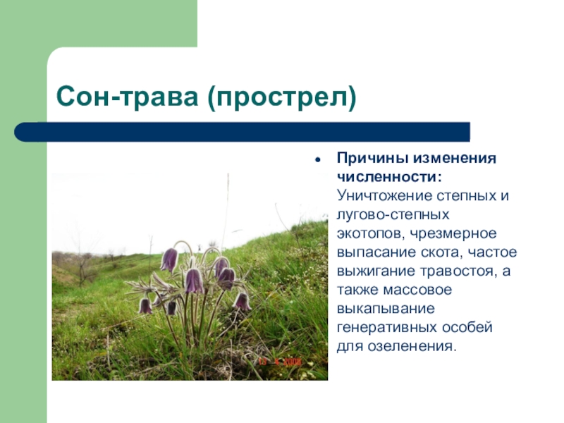 Вырубка лесов, уплотнение почвы при выпасе и прогоне скота, а также при избыточной рекреации, сбор растений в букеты и изъятие их для пересадки.