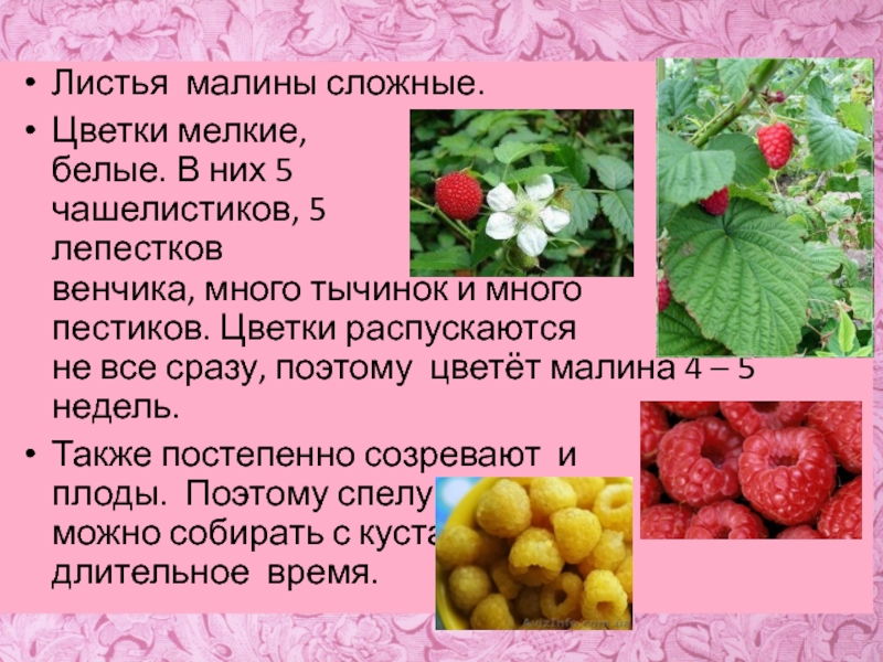 Слайд 8Листья малины сложные.