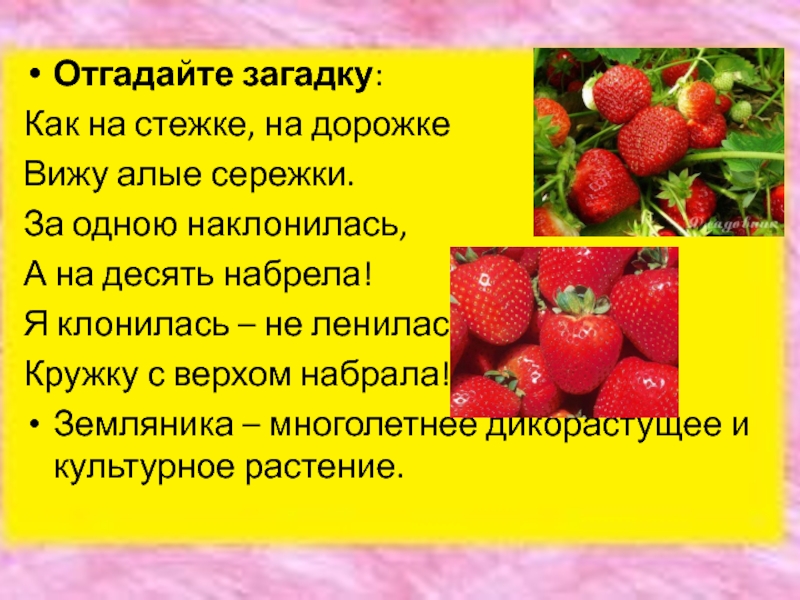Земляника – многолетнее дикорастущее и культурное растение.
