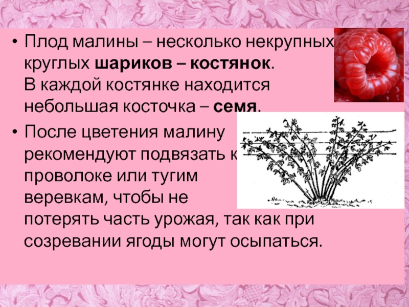 Слайд 9Плод малины – несколько некрупных