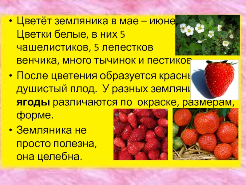 Слайд 14Цветёт земляника в мае – июне.