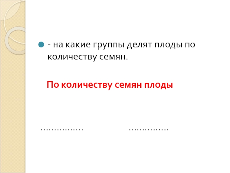 - на какие группы делят плоды по количеству семян.	  По количеству семян плоды…………….