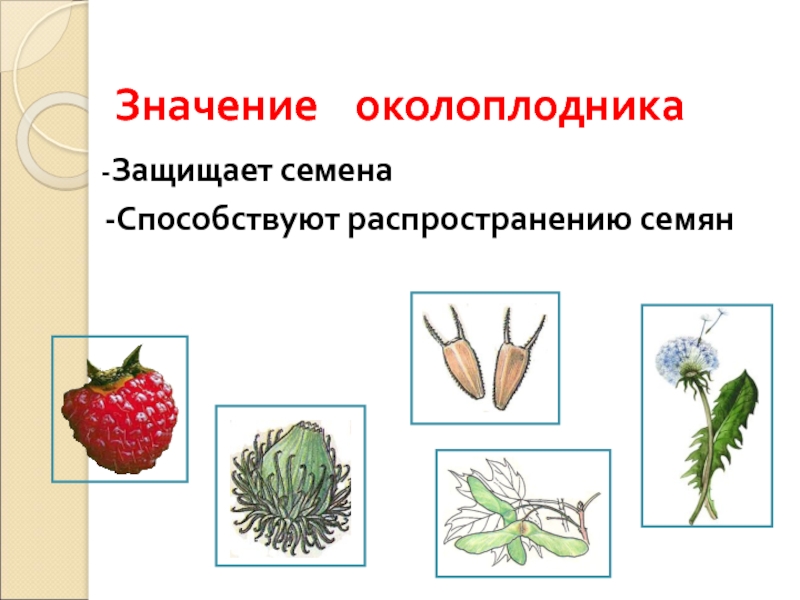 Значение  околоплодника  -Защищает семена  -Способствуют распространению семян