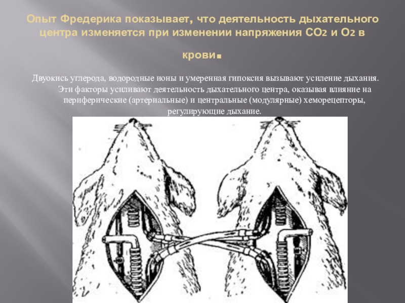 Слайд 25Опыт Фредерика показывает, что деятельность дыхательного центра изменяется при изменении напряжения
