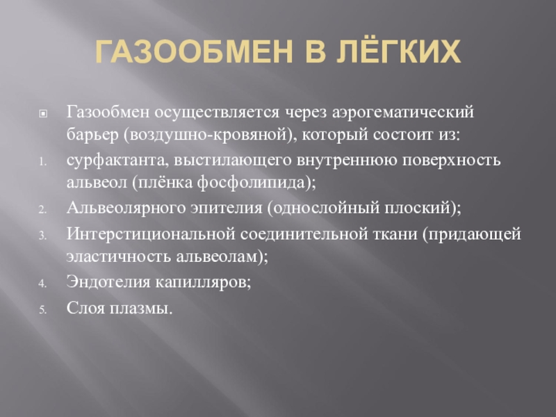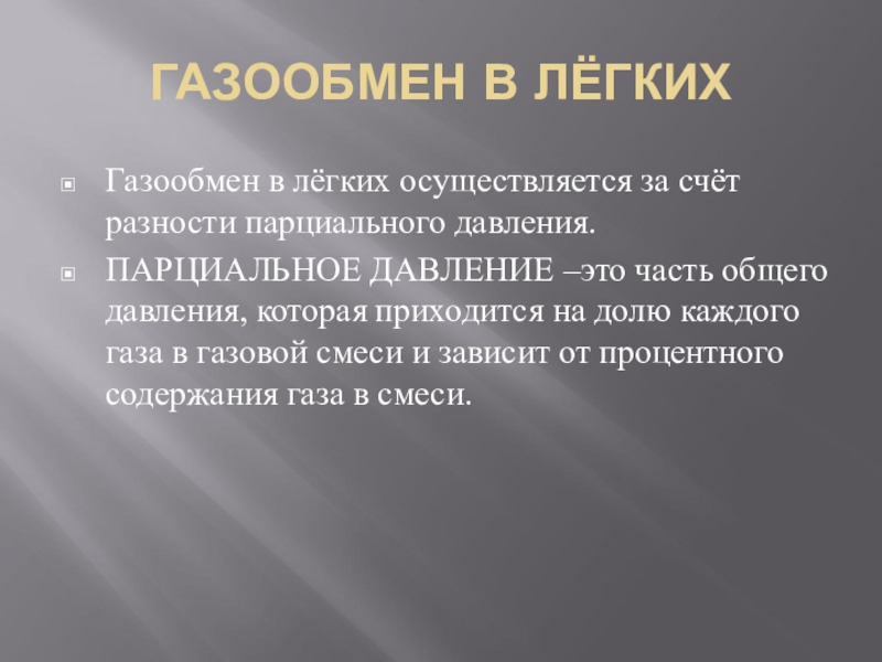 Слайд 10ГАЗООБМЕН В ЛЁГКИХ