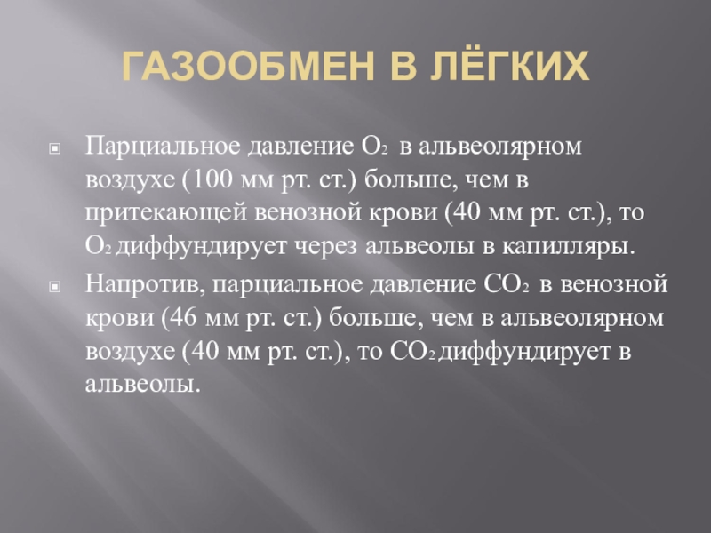 Слайд 9ГАЗООБМЕН В ЛЁГКИХ