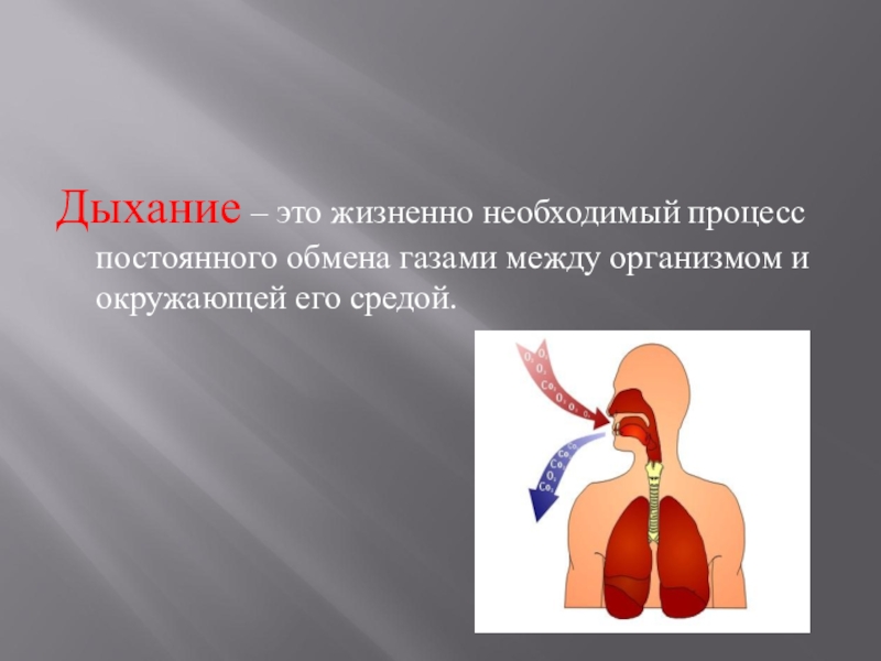 Слайд 3Дыхание – это жизненно необходимый процесс постоянного обмена газами между организмом