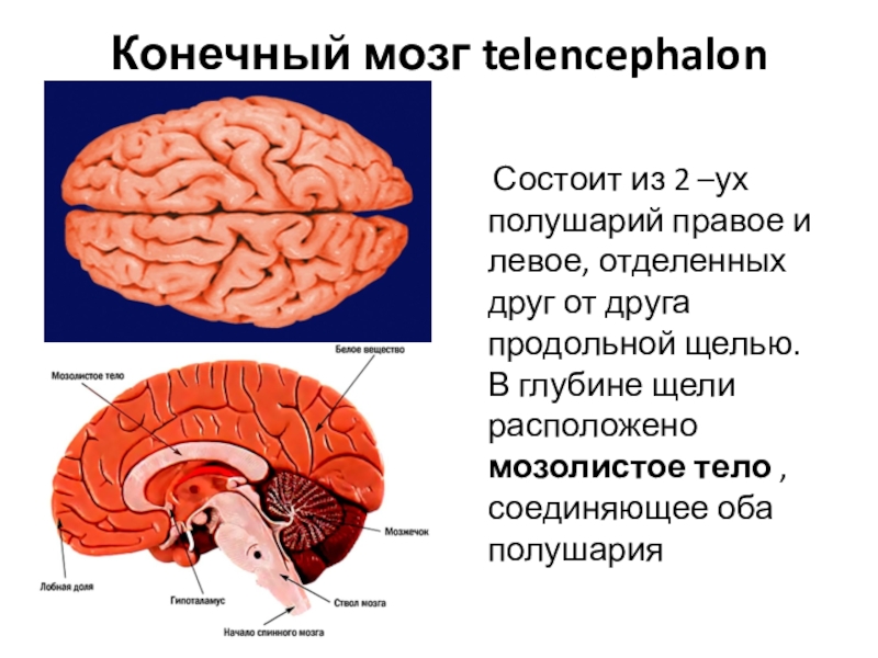 Слайд 16Конечный мозг telencephalon