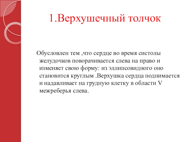 Слайд 23 1.Верхушечный толчок