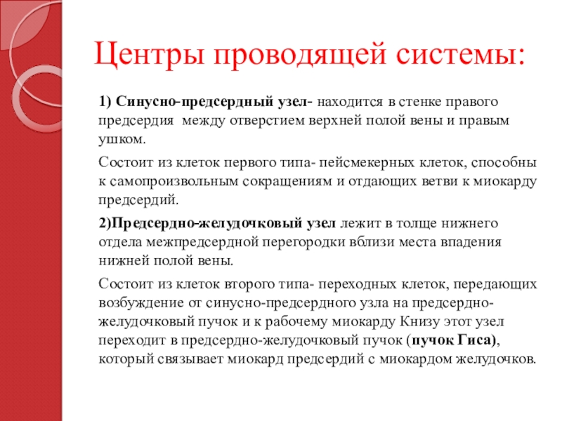 Слайд 5Центры проводящей системы: