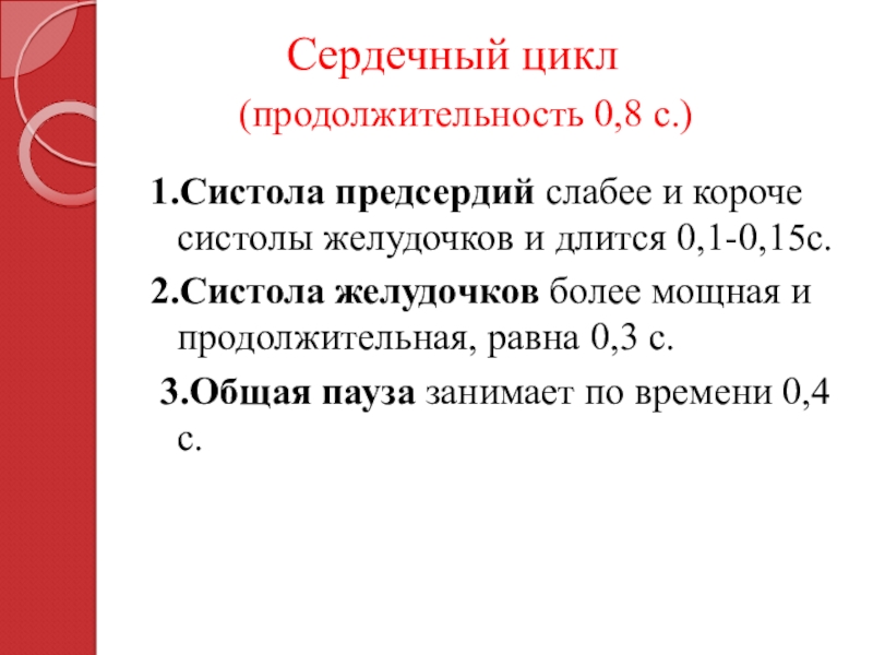 Слайд 21Общая пауза сердца длится 0,4 с. В течение этого периода сердца